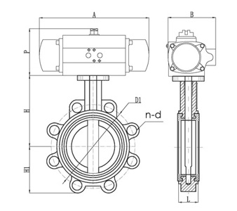 气动凸耳式蝶阀外形尺寸: